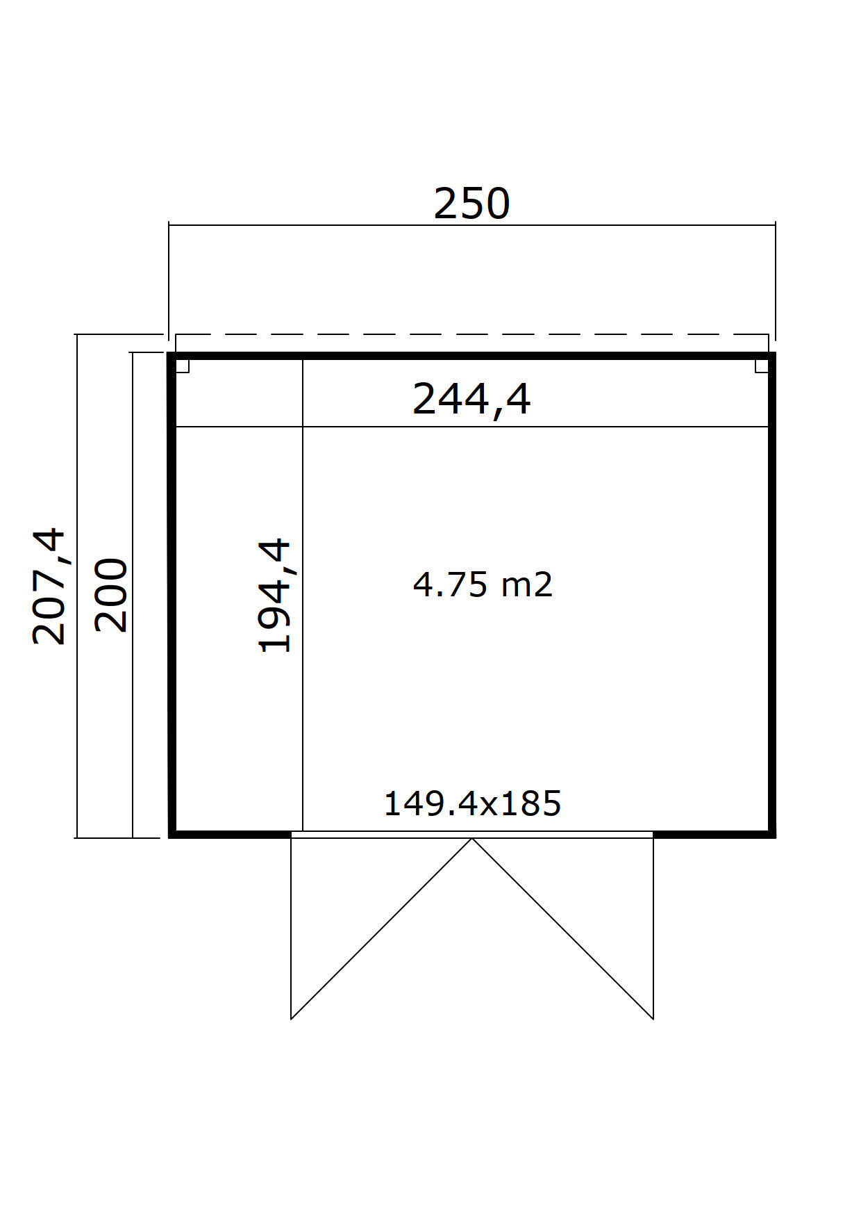 Põrandapind 4.75 m²Ehitisealune pind: 5.00 m²Katuse pindala: 5.15 m²Katuse kalle: 1Seina paksus 28 mmAlusraam: 45 x 45 mmKatuselaua paksus: 15,5 mmVundament 250 x 200 cmLaius koos räästa üleulatuvusega: 250 cmSügavus koos räästa üleulatuvusega: 207 cmSeina kõrgus: 222 cmHarja kõrgus: 222 cmKatuse üleulatuvus tagant: 7 cmUkse tüüp BronzeUkse mõõdud: 1494 x 1850 mmPaigaldatav peegelpildis: JahViimistlus: ViimistlemataVärvitoon: NaturaalneKonstruktiivne materjal: FeesprussNurga tüüp: Kruvitav nurgapostMaterjal: Põhjamaine kuuskLumekoormus: 150 kg/m²