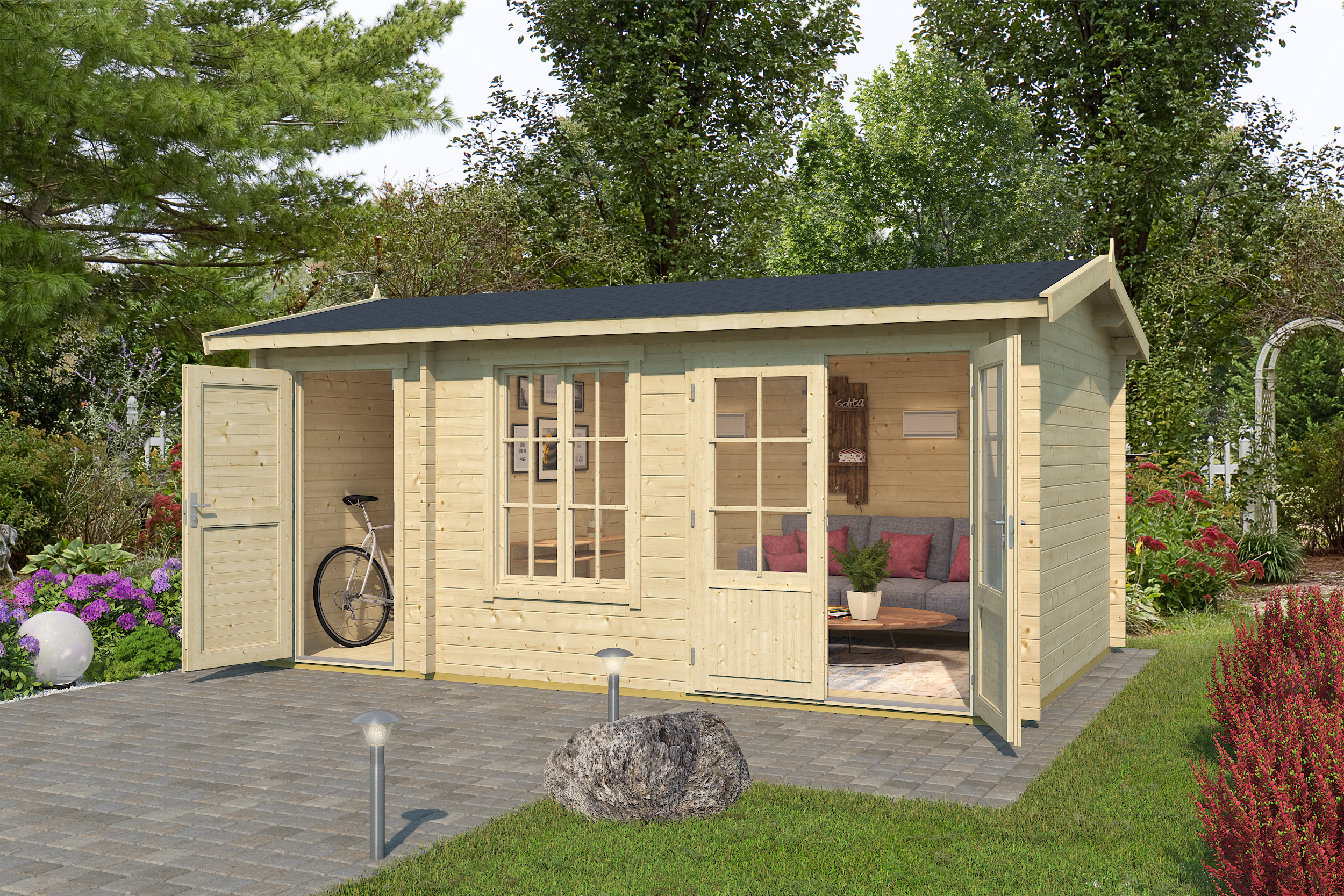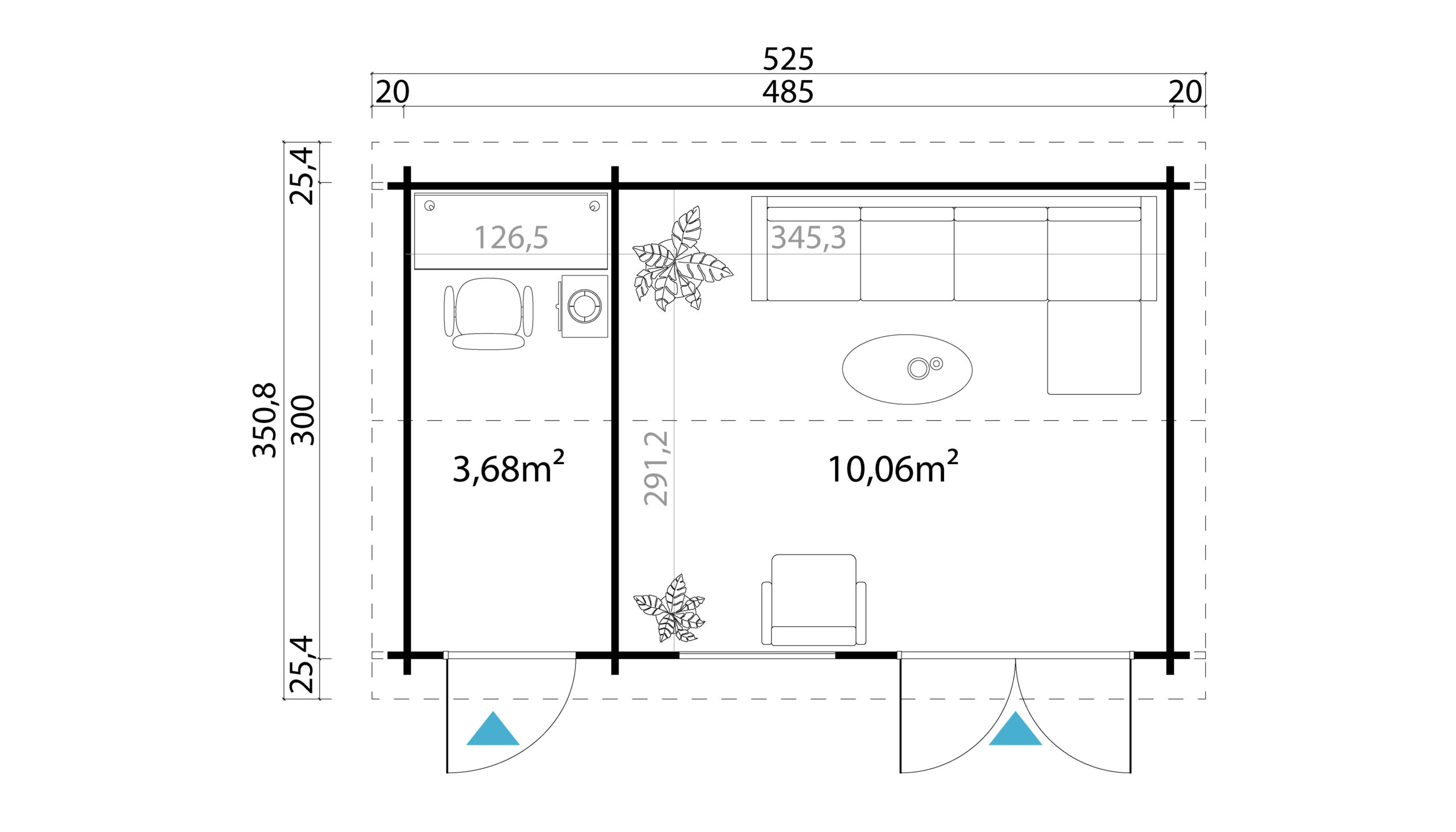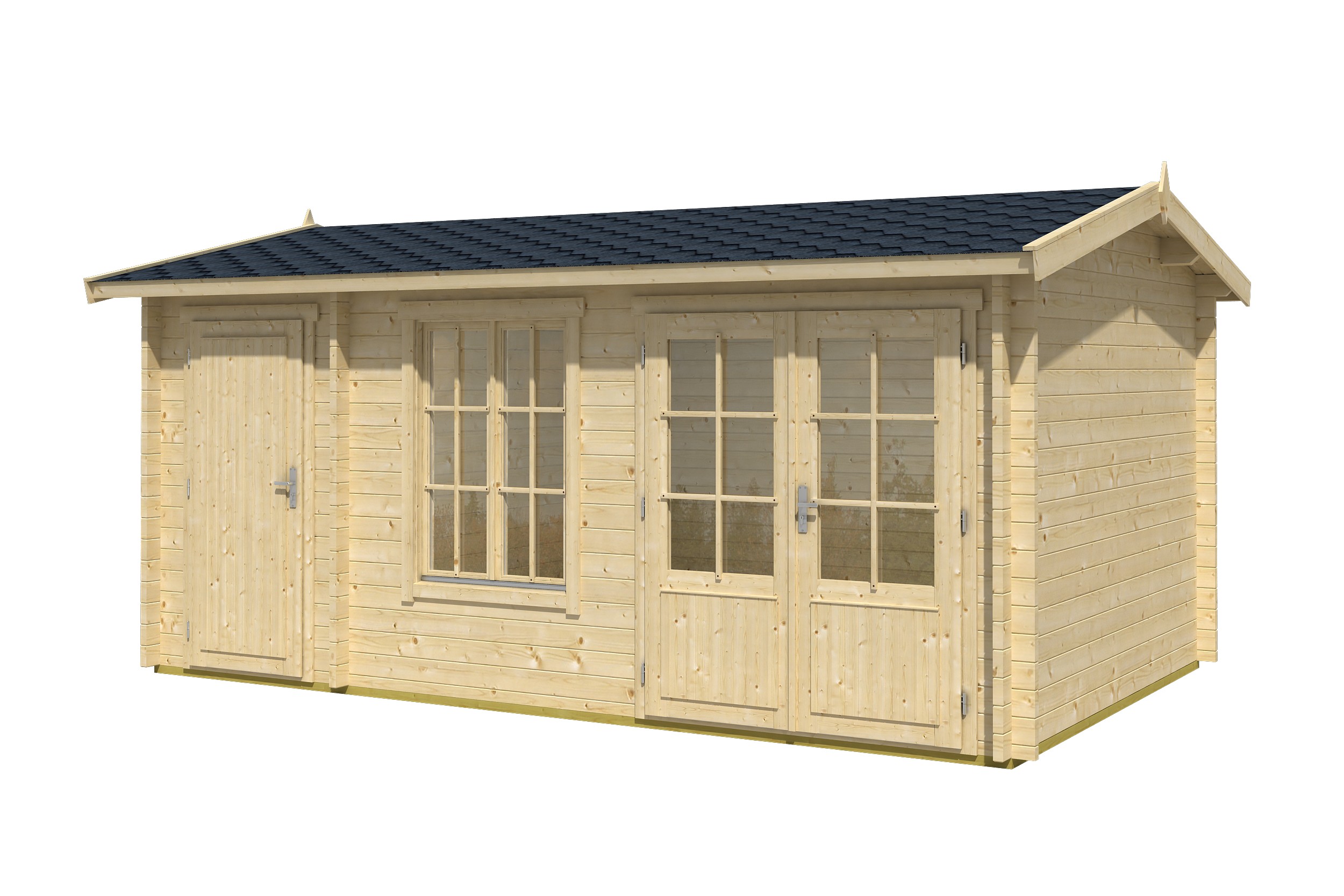 Põrandapind 13.90 m²Ehitisealune pind: 14.60 m²Katuse pindala: 18.90 m²Katuse kalle: 13Seina paksus 44 mmAlusraam: 45 x 70 mmPõrandalaua paksus: 18,5 mmKatuselaua paksus: 18,5 mmVundament 485 x 300 cmLaius koos räästa üleulatuvusega: 525 cmSügavus koos räästa üleulatuvusega: 351 cmSeina kõrgus: 211 cmHarja kõrgus: 251 cmKatuse üleulatuvus eest: 25 cmKatuse üleulatuvus külgedelt: 20 cmKatuse üleulatuvus tagant: 25 cmUkse tüüp GoldUkse mõõdud: 835 x 1850 mm